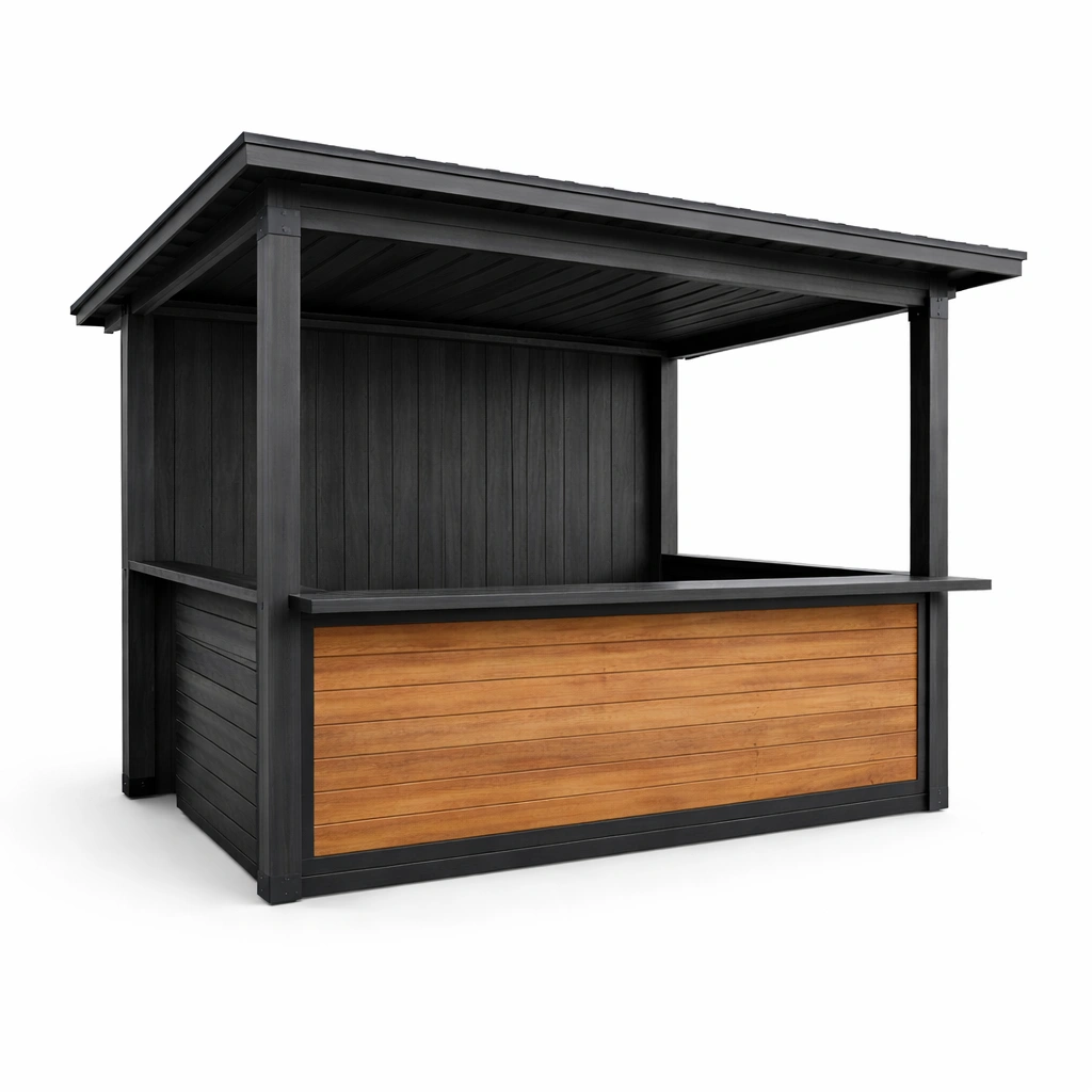 Bar da giardino in legno trattato con tetto piatto