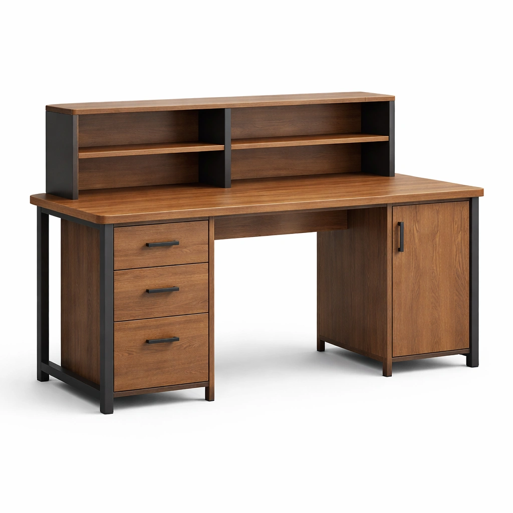 Scrivania in legno e metallo con cassetti e armadietto 152x60x107 cm