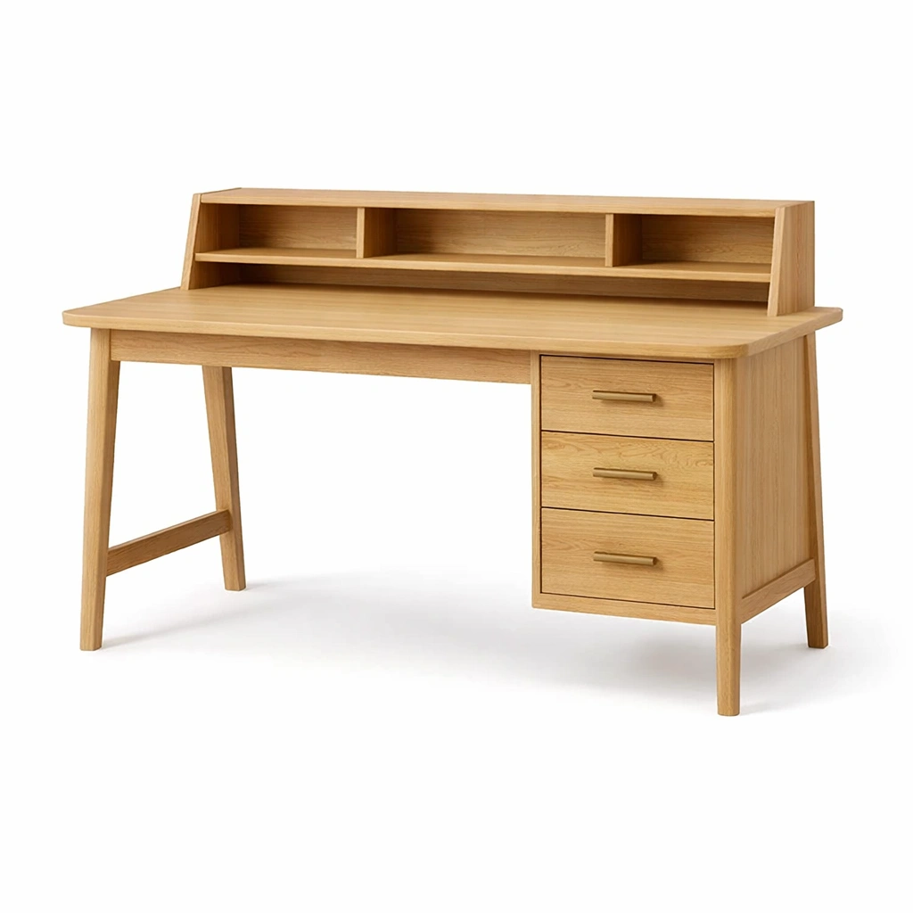 Scrivania in legno di quercia con cassetti e ripiani