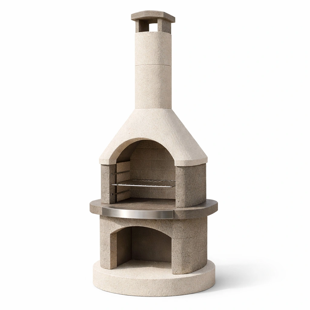 Barbecue in cemento con griglia in acciaio inox beige