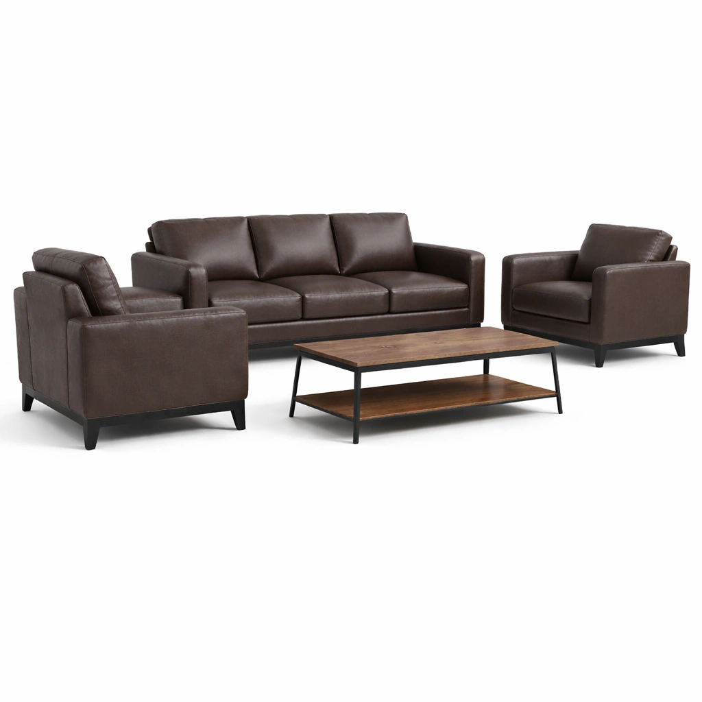 Set composto da un divano a tre posti, due poltrone e un tavolino da caffè.